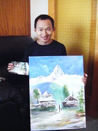 The theme of the paintings would be centred on his homeland Bhutan, life in the refugee camp in Nepal and his new home in Hobart, Tasmania. This will give the viewer a comprehensive understanding of his life in Bhutan, Nepal and now Tasmania.