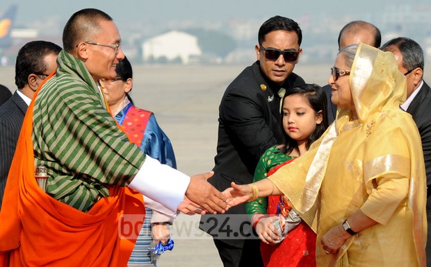 He was welcomed at the airport by Bangladeshi Prime Minister Sheikh Hasina. Tobgay was given a guard of honour by the Bangladesh armed forces on his arrival. At the airport Tshering introduced his entourage to Sheikh Hasina.