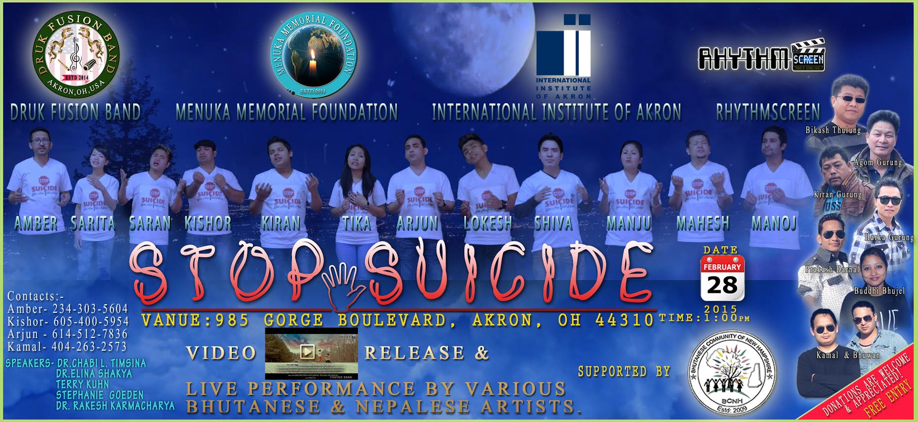 Druk Fusion Band, Menuka Memorial Foundation, International Institute of Akron and Rhythm Screen Creations have joined hands to host this mega event.