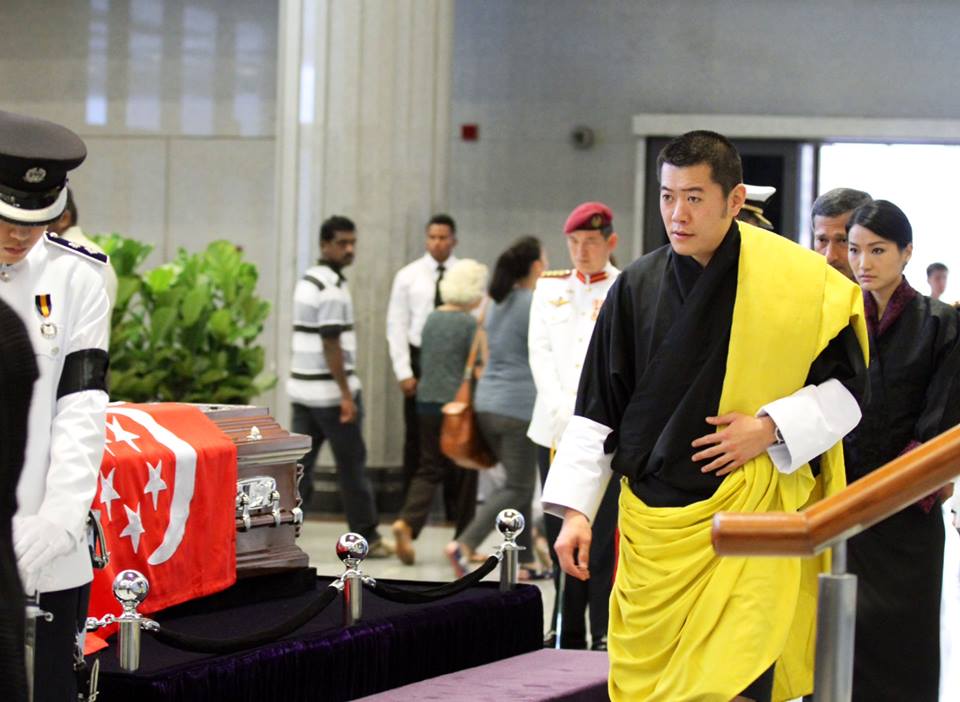 Bhutan King Jigme Khesar Namgyel Wangchuck and Queen Jetsum Pema have paid tribute to the first prime minister of Singapore on Saturday afternoon.