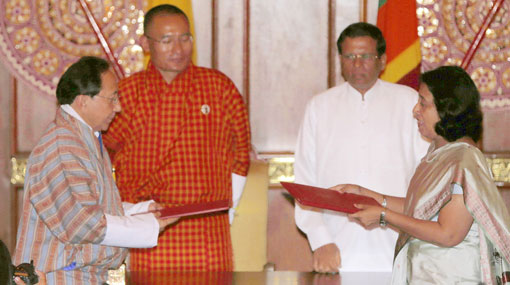 The Secretary to Ministry of Foreign Affairs Chitranganee Wagiswara signed the MoU on behalf of the Government of Sri Lanka while Ambassador Sonam T. Rabgye, Acting Foreign Secretary, Ministry of Foreign Affairs of Bhutan signed the agreement on behalf of the Government of Bhutan.