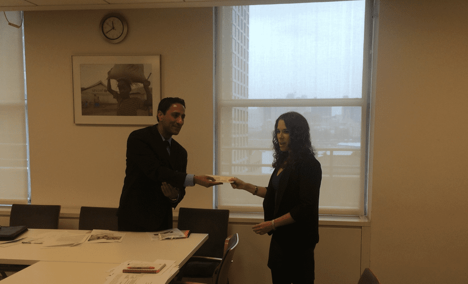 UNICEF Assistant Director, Civil Society Partnerships, U.S Fund for UNICEF Rachel Steinberg received the donations from the delegates.