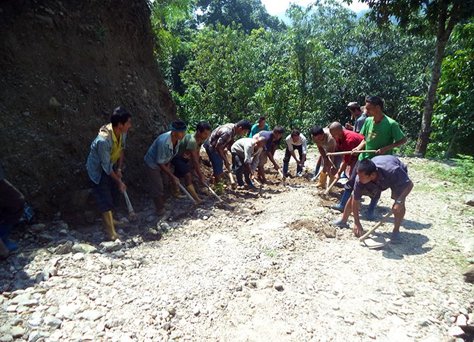 The Pokri Dangra village opted for a power tiller track from Sernyagang (KholaKharka) to Tsholingkhar (Pokhari Dara)— a 2.4 km access road in Namgyelchoeling Geog, Samtse Dzongkhag. The community hired an excavator with the allocated budget and provided their own labor as in-kind contribution. The community also used their own vehicles for transportation of fuel for the machine.