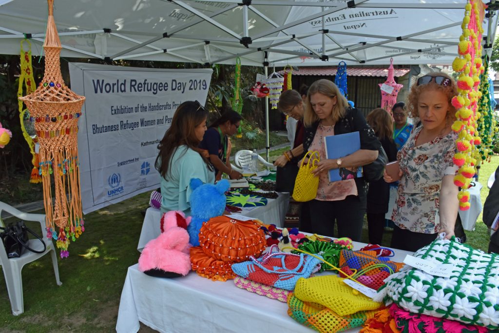 On Friday June 14 and Saturday June 15, exiled Bhutanese women representing the Bhutanese Refugee Women Forum (BRWF) and the Bhutanese Refugee Association of the Disabled (BRAD), exhibited their handicrafts including Dhaka handloom products which they were able to successfully market in three locations in Kathmandu– the Australian Embassy, the UN House and the very popular weekend Farmer’s Market. The exhibitions focused on income-generation activities and promotion of self-reliance among exiled Bhutanese, particularly women.