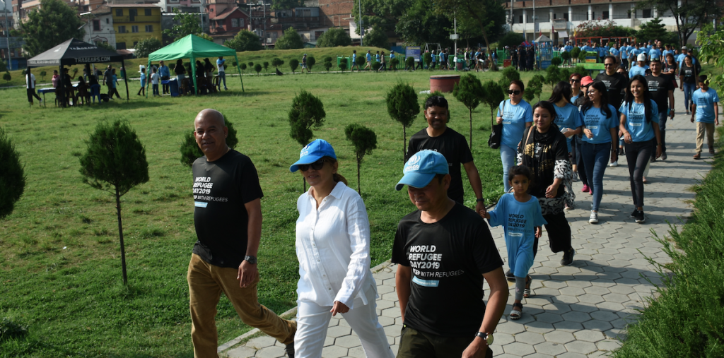 A Solidarity Walk/ Run event was held in central Kathmandu on Saturday, June 15, to mark World Refugee Day 2019. Approximately 300 people, including Refugees, host communities, partner agencies and members of Nepali civil society organisations participated in a solidarity walk to support and recognise UNHCR’s 2 Billion Kilometres to Safety campaign. Cultural performances by exiled Bhutanese, whose travel to Kathmandu was organised by UNHCR, as well as students and musicians from the host community also took place, reflecting and celebrating the strong and important bonds between them.