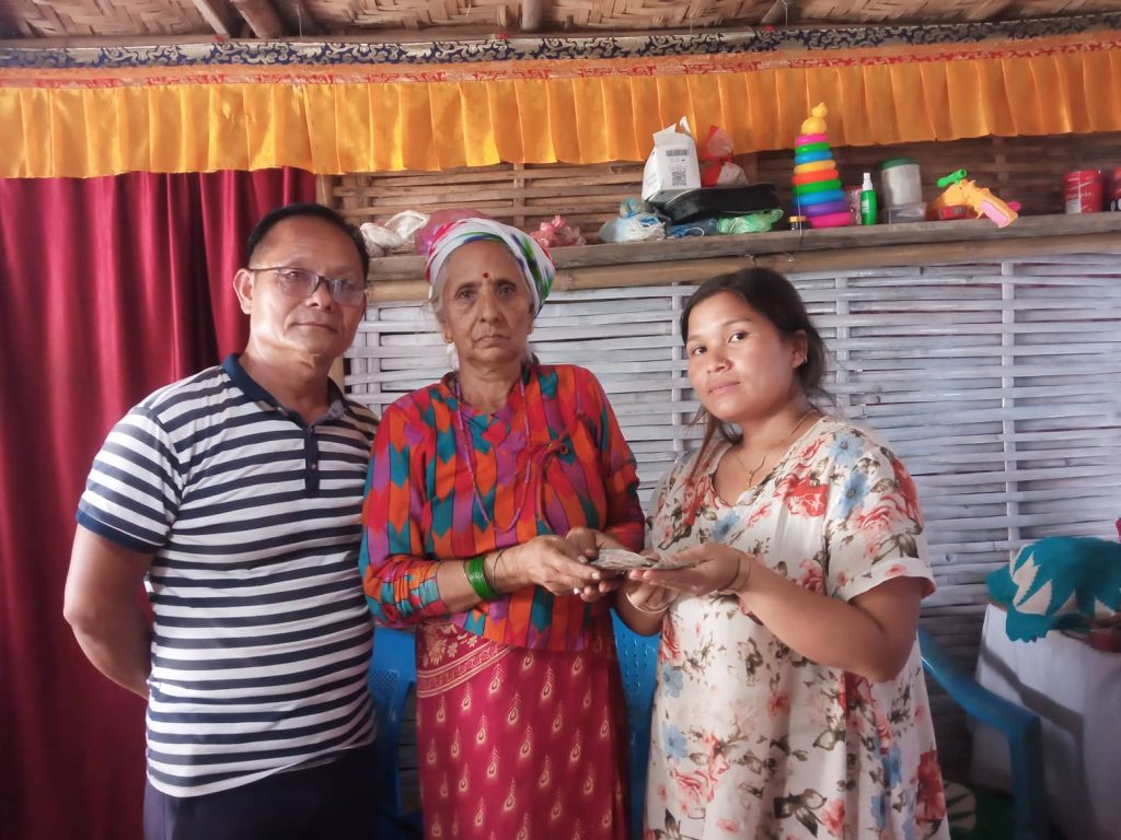 In the Bhutanese refugee camp Beldangi, a three members committee led by Dambar Kumari Adhikari, mother of one of the Chemgang-based life-sentenced political prisoners, Omnath Adhikari, was formed for the cash distribution. The funds were handed over to families of the 13 prisoners living in the camps. Former political prisoners Dil Kumar Rai and Santi Ram Acharya were the other members of the committee. Financial support was directly sent to the other two families not living in the camps.