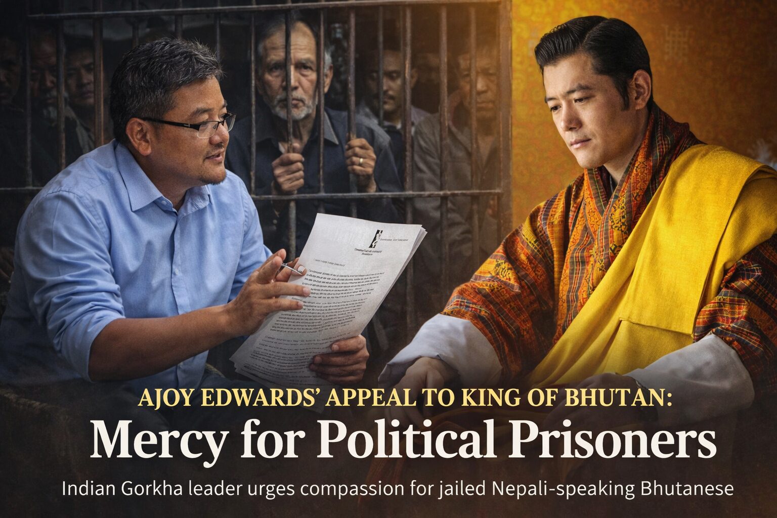 Darjeeling, India — Ajoy Edwards, President of the Indian Gorkha Janshakti Front (IGJF) and a senior, widely respected Gorkha leader from Darjeeling, has written an open letter to His Majesty King Jigme Khesar Namgyel Wangchuck of Bhutan, appealing for mercy for Nepali-speaking political prisoners who have spent decades in prison for non-violent dissent.