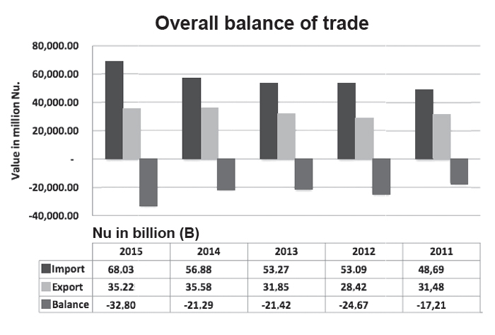 Read MoreOther than electricity, Bhutan continues to face rising deficit in its international trade. Last year, 2015, Bhutan’s trade deficit stands